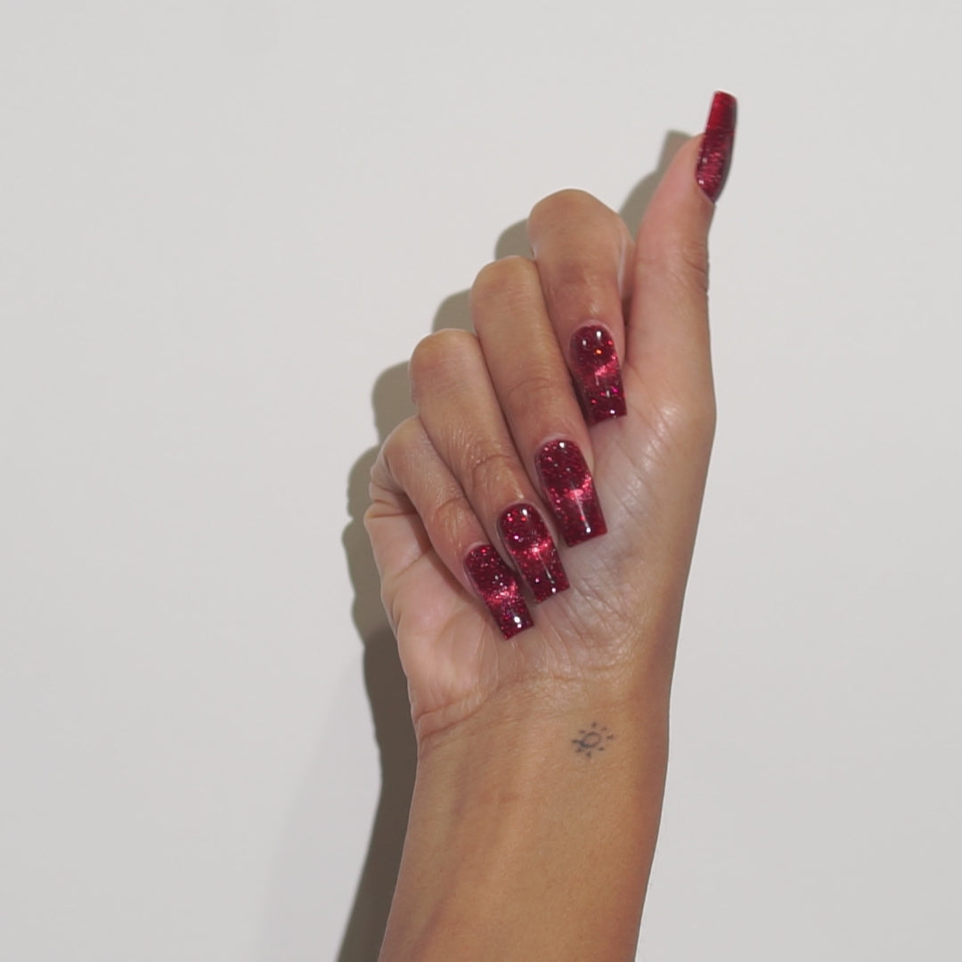 A ruby red magnet gel with flash glitter.