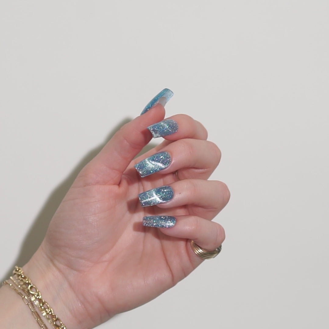 An aqua blue magnet gel with flash glitter.
