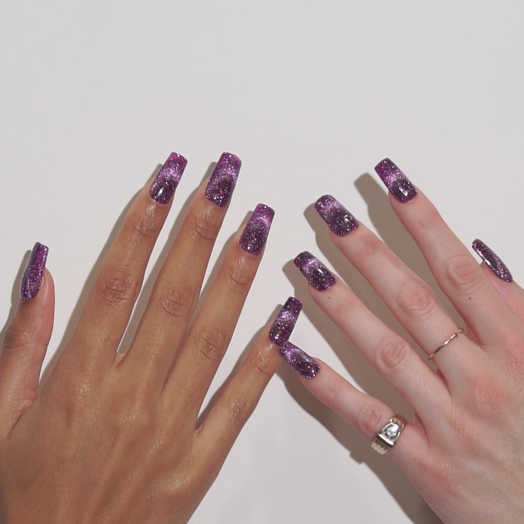 A deep purple magnet gel with flash glitter.