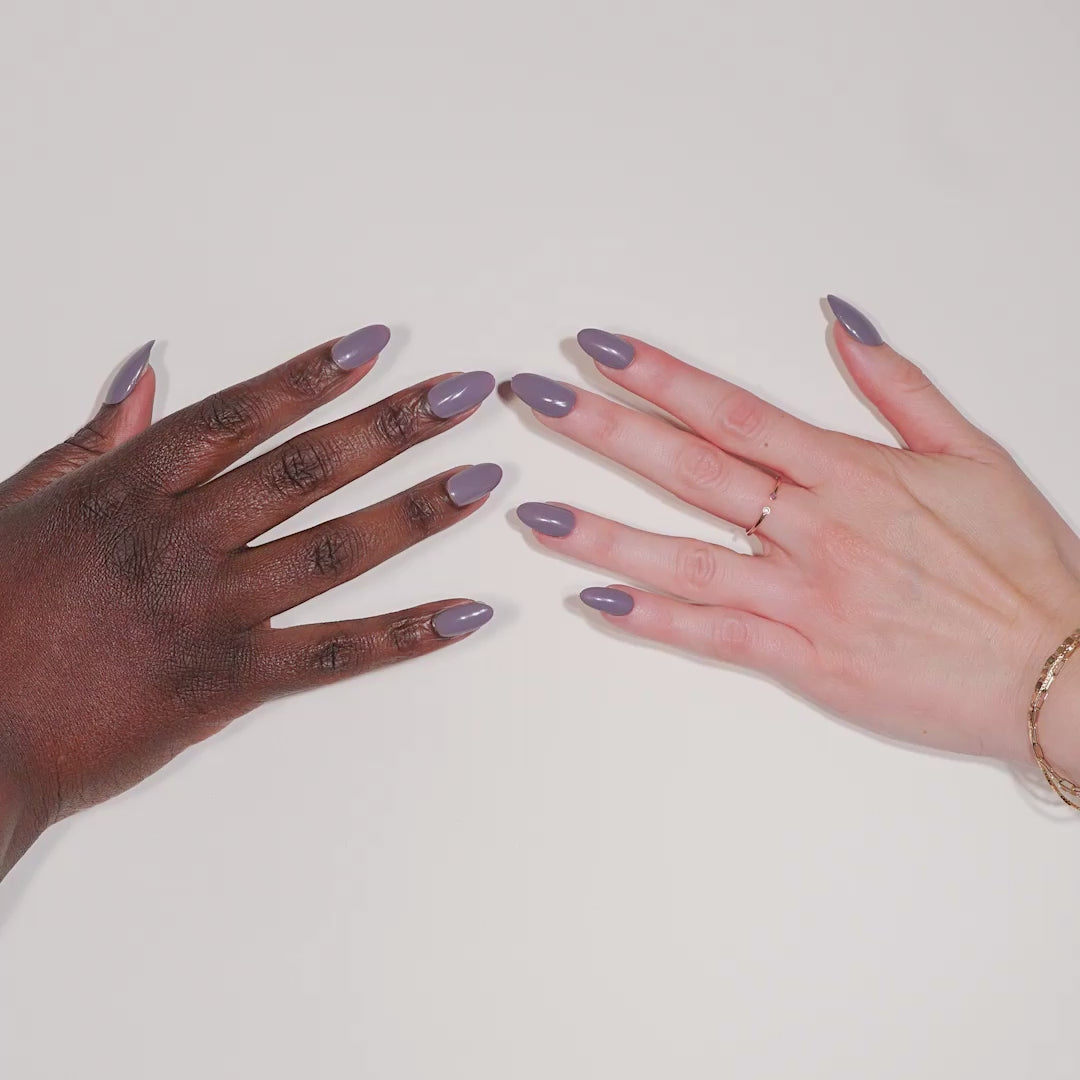 After Hours is a grayish lavender color. This specific lavender is darker than your average true lavender. It has a gray hue for a lovely subdued classic manicure color.