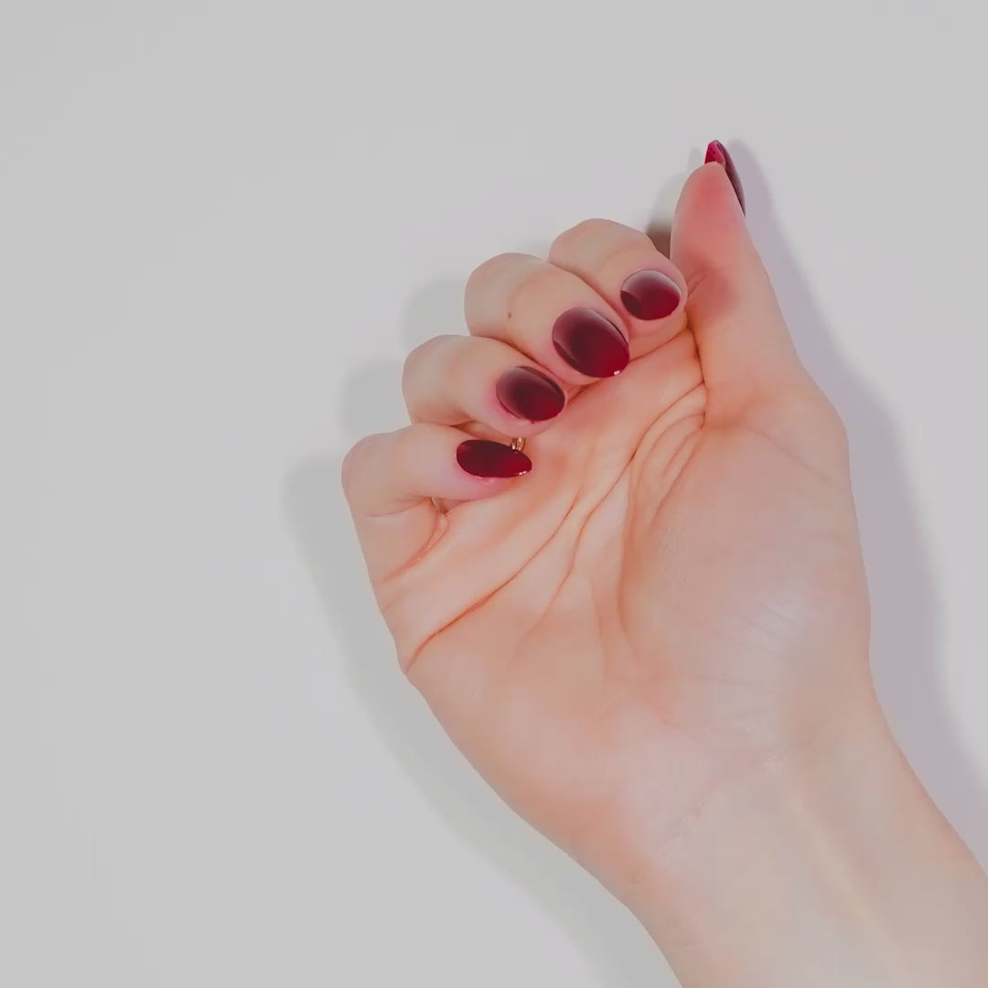 This is a deep, maroon, ruby red gel nail color. Everyone needs that deep dark red gel nail color in their collection because truly you can’t have enough of them! Some of them are more warm, some are more cool, but this one specifically is on the warmer jewel toned end of the spectrum. This color is perfect for those who love a red nail but want to change it up to be more subtle and vampy! This is a great neutral color for all year round.